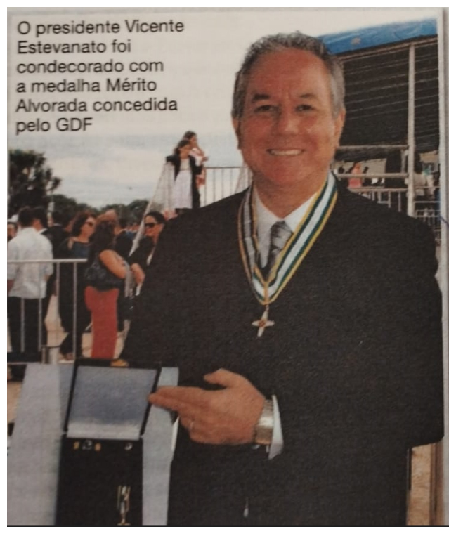 O presidente Vicente Estevanato foi condecorado com a Medalha do Mérito Alvorada concedida pelo Governo do Distrito Federal "em homenagem a personalidades civis e militares que contribuem de modo relevante para a sociedade"
